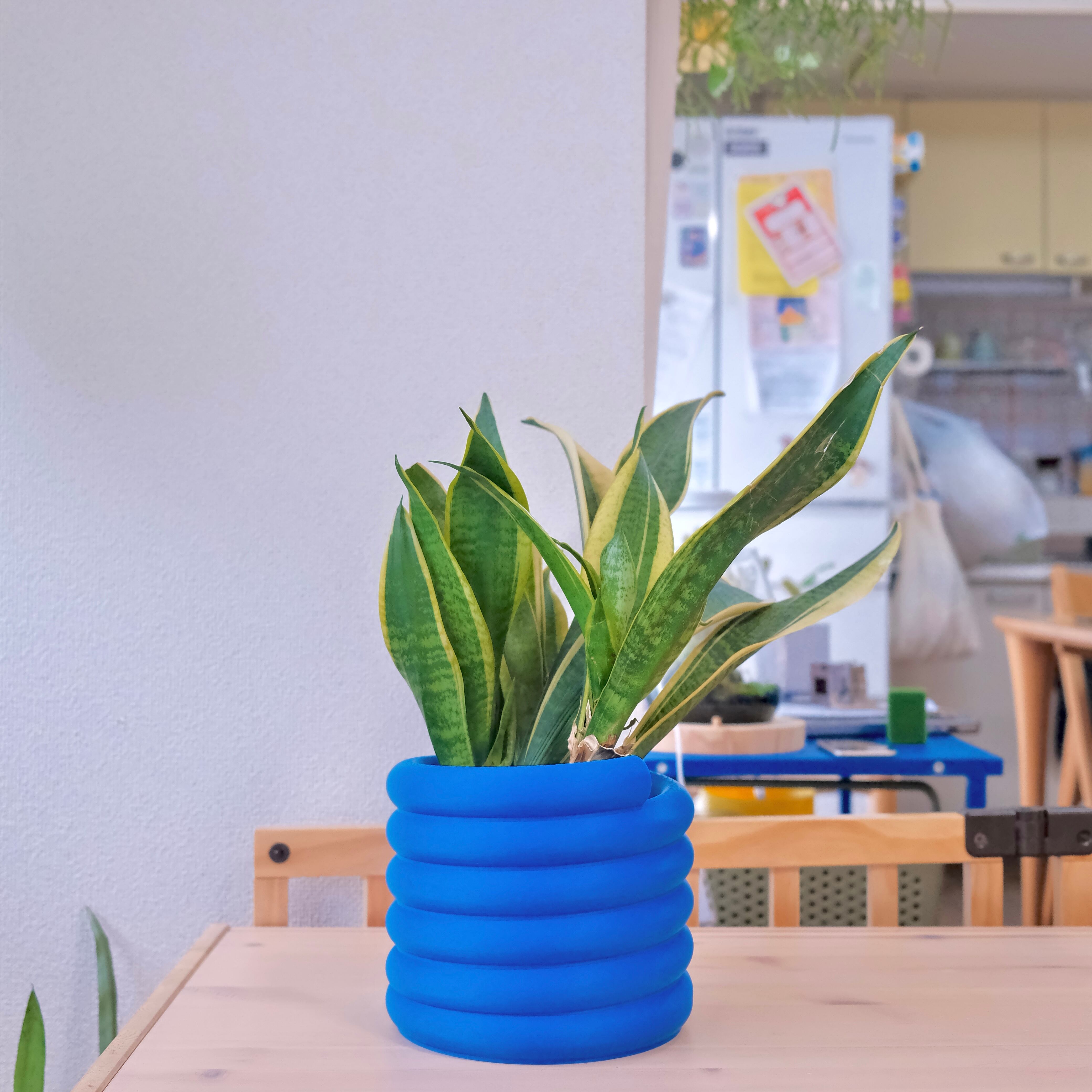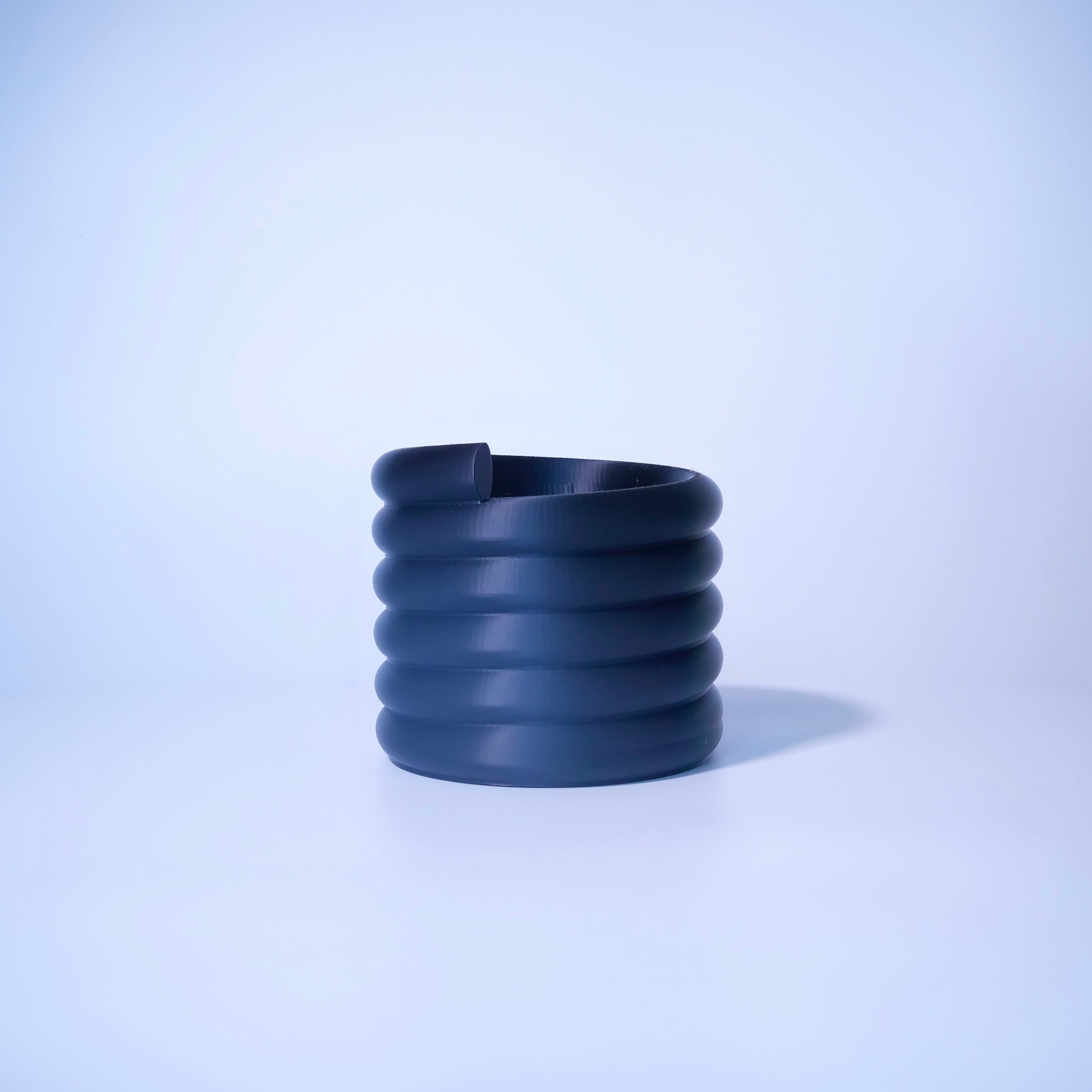 渦巻きのかたちの鉢カバー。当ショップの商品では最大サイズです。お使いの植木鉢ごと植物を入れてください(鉢底に穴は空いておりませんのでご注意ください)。花瓶としてもお使い頂けます。