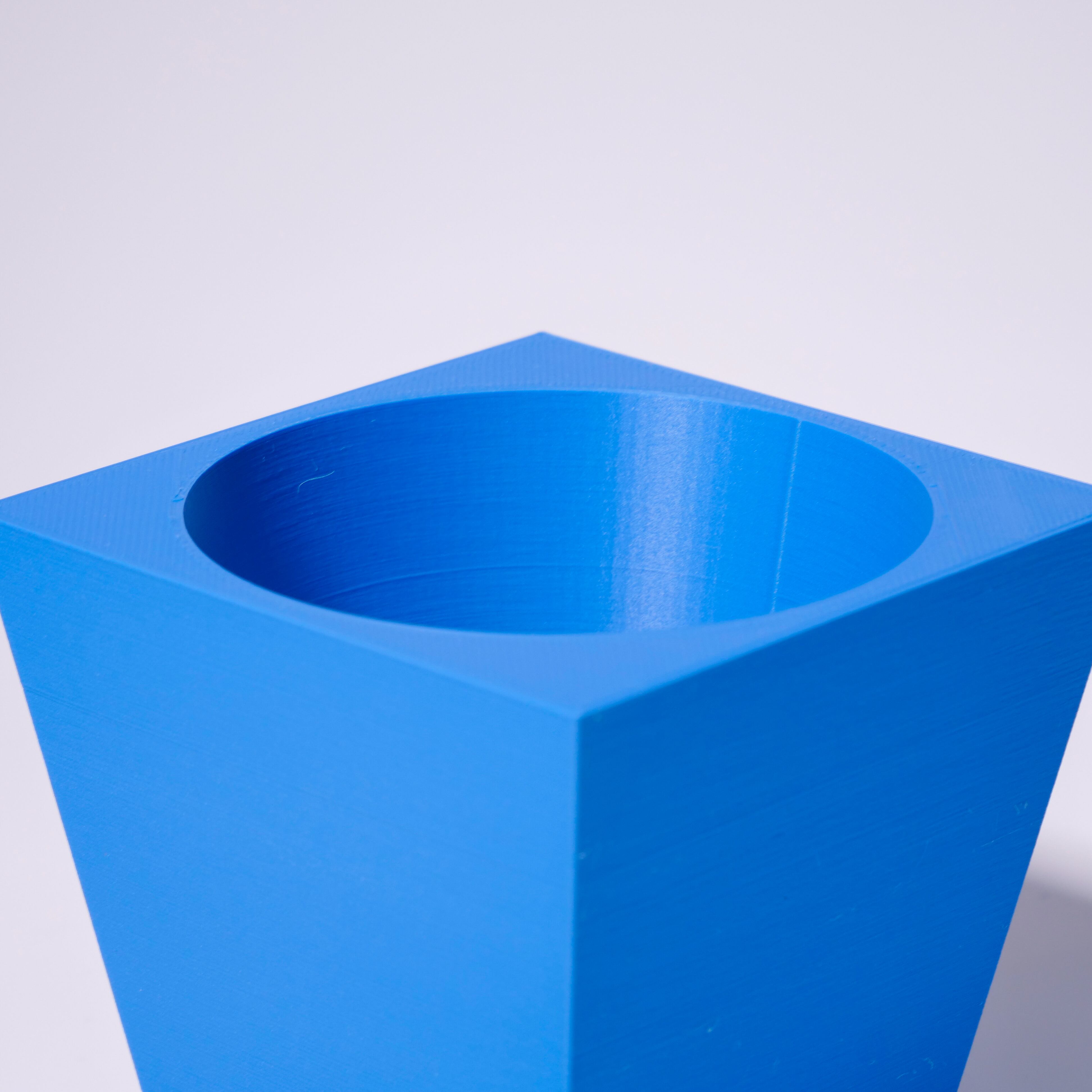 シンプル・モダンをテーマに単純な多面体で構成した実験的なプロダクトです。内側は円形に切り抜かれていて外壁との対比が特徴的なデザインになっています。