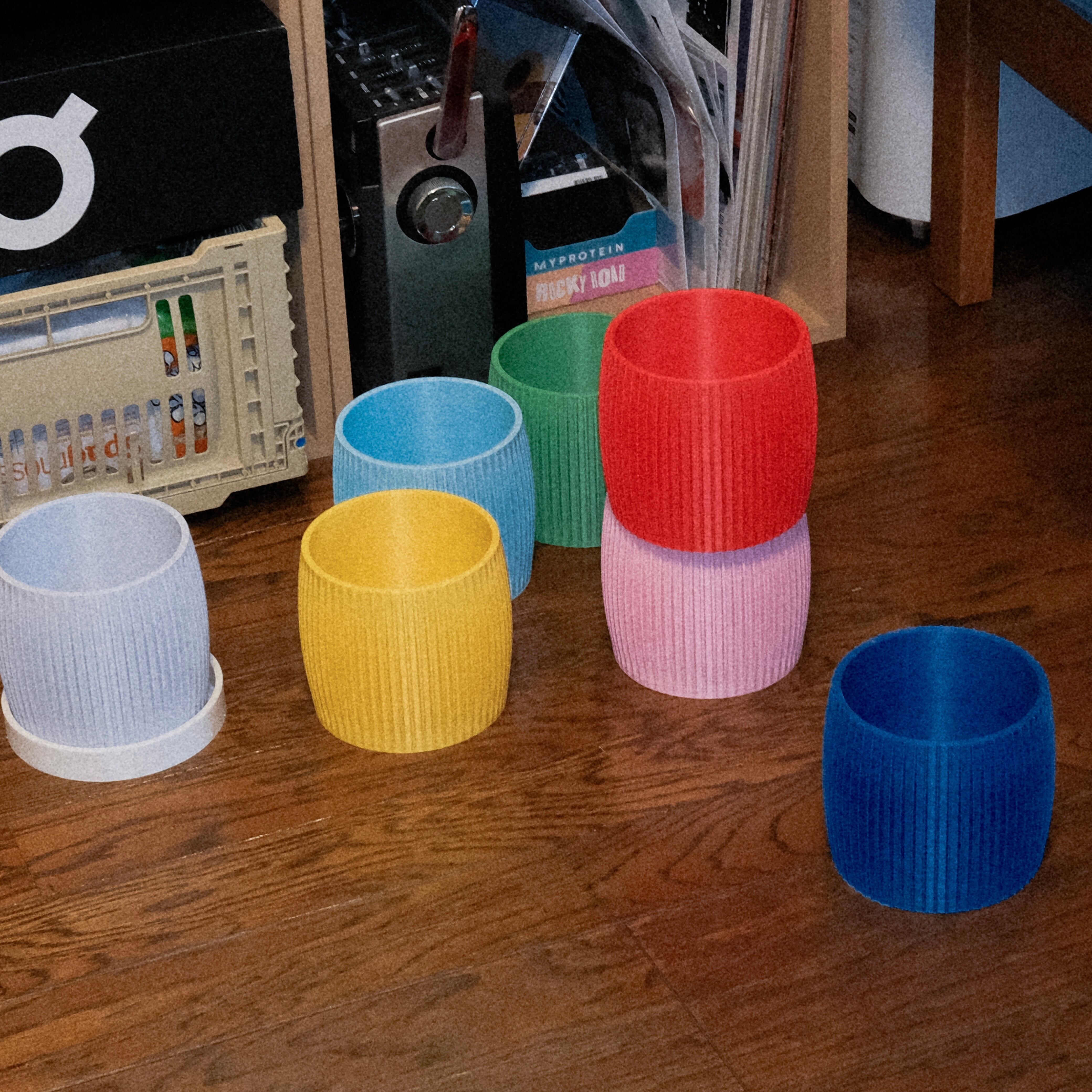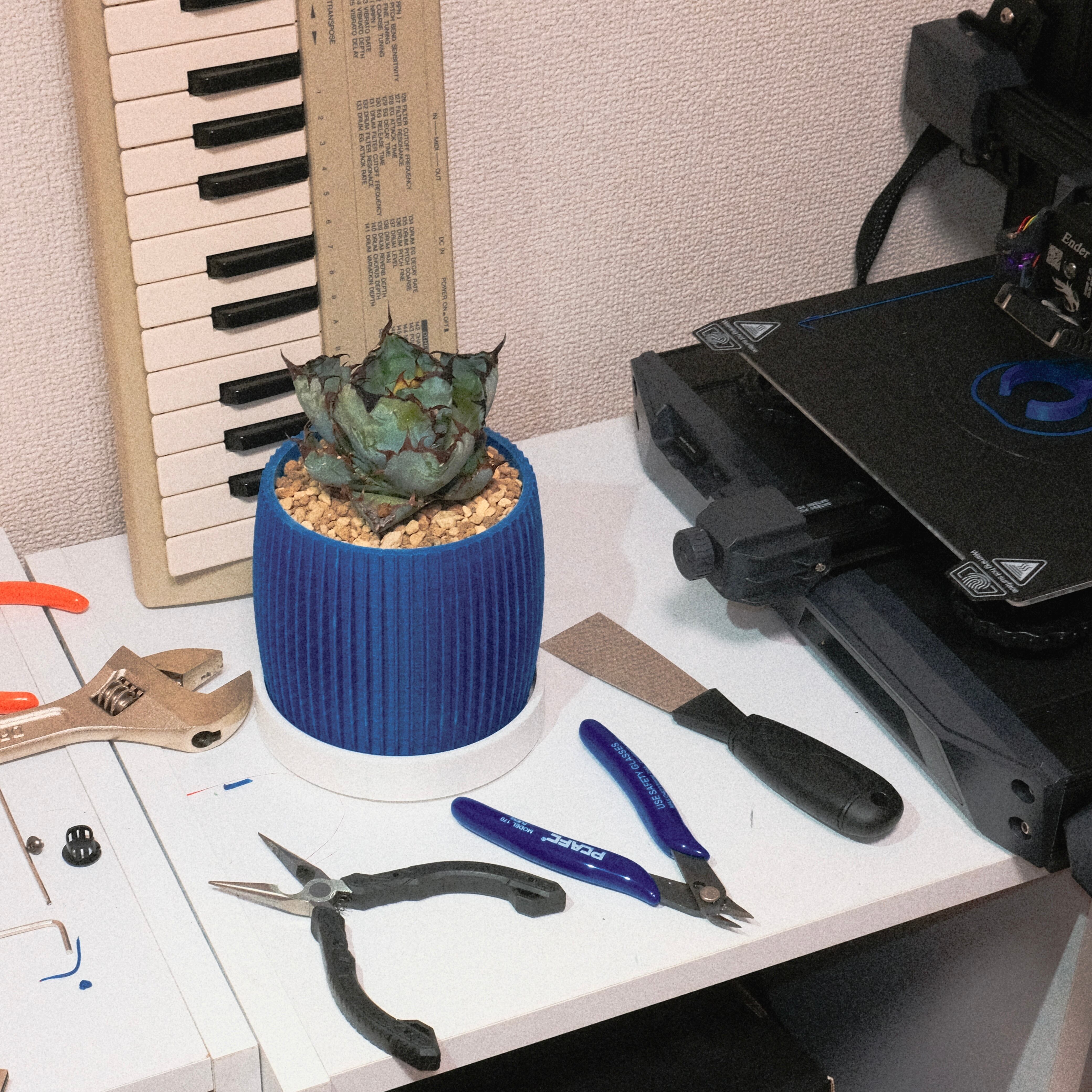 3Dプリンター製の植木鉢「moyuku pot」。植木鉢と受け皿のセットです。お部屋に馴染むシンプルなデザインで植物の存在感を引き立たせます。豊富なカラーバリエーションで鉢と植物の組み合わせが楽しめます。
